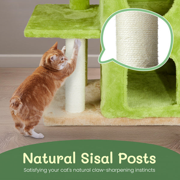 3. Exciting Climbing & Scratching Opportunities: Designed with multiple levels, this cat tree encourages your cats to climb and explore. The integrated scratching posts are wrapped in sisal rope, satisfying their natural scratching instincts, while the dangling pom ball adds an extra element of fun.