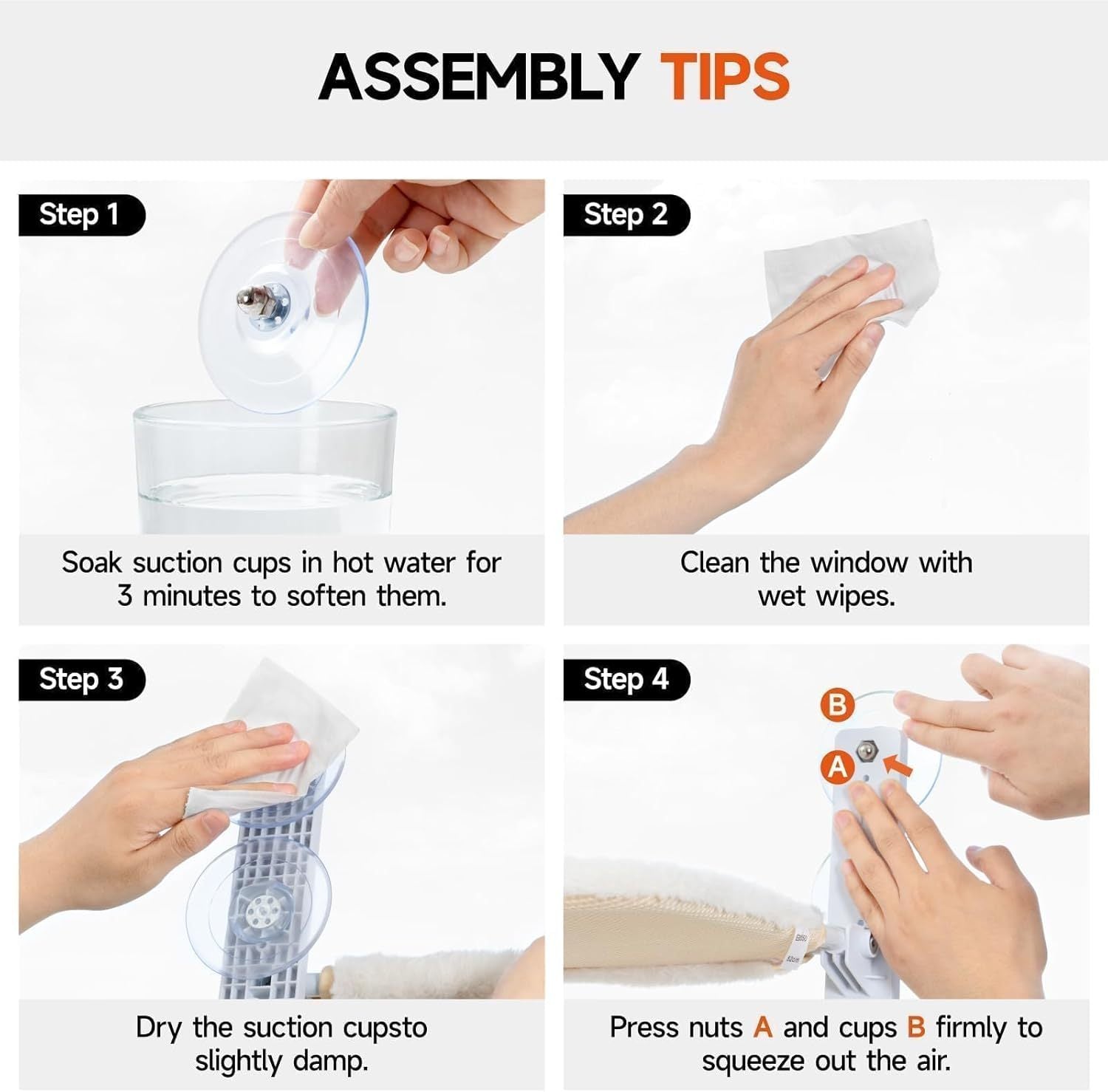 - Easy to Assemble:With illustrated assembly instructions included, you can assemble this well-designed cat window lounger in about 5 minutes. The cat window seat takes 24 inches by 8 inches of window space and is 20.5 inches by 11.8 inches when completed